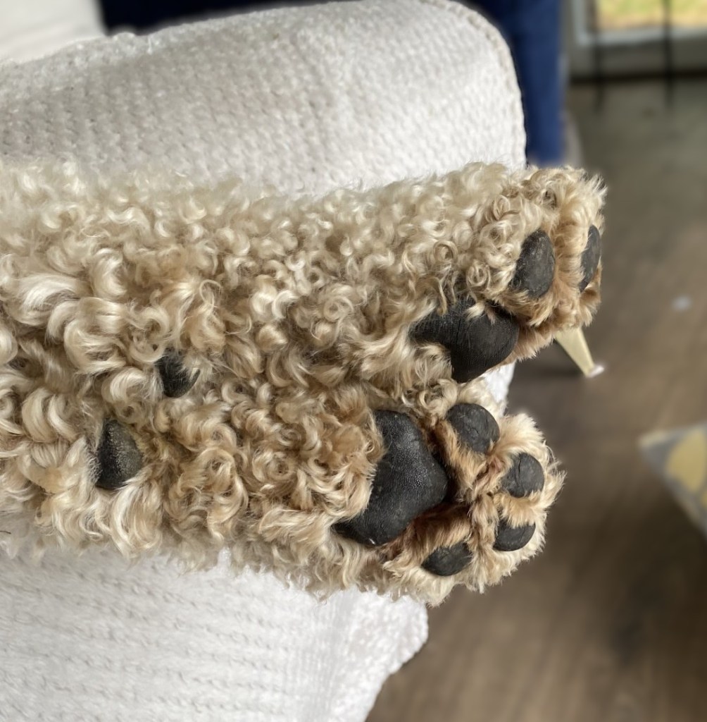 It has been a perfect experience from start to finish. Hudson is the perfect dog. Giant and gentle, easy going and with (almost) no bad habits (we all have some bad habits after all). He’s a dream dog. The house is like something out of a magazine. A modernized old cottage with an extensive garden that is so easy to live in that, really, I don’t want to leave. All over the house and garden is scattered comfortable furniture where all three of us can find our own space to curl up and read our books. The family photos and grandchildren’s arts and crafts suggest this is a house filled with love. And, there is an amazing office halfway down the garden, where I have been working all week.