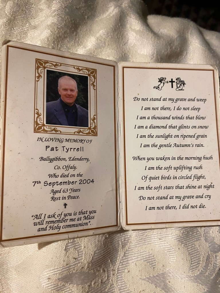 Daddy’s memorial card, one of many I have of various family members and friends.